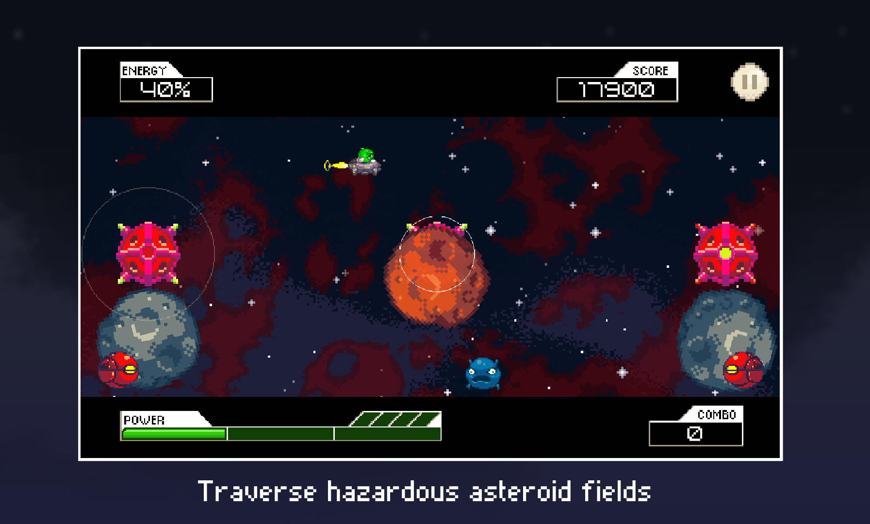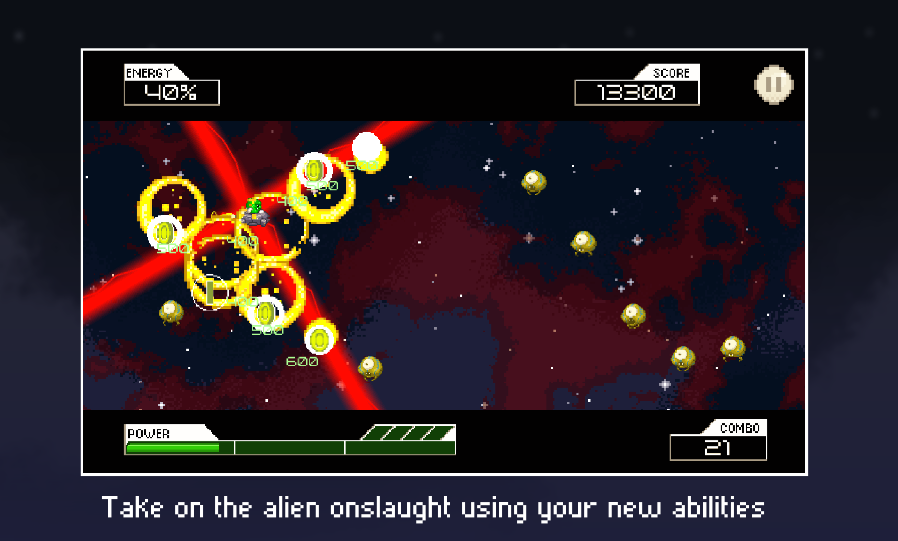 Action packed alien devastation! Epic boss battles with shifting mechanics and behaviours! Different weapon levels awarded by defeating the menace and activating your power up system! Hazardous obstacles to overcome as you power your way through the nebulae of space! Navigate through the different sectors of space, blast the alien colonies and end this war to return peace to the galaxy! Addictive survival based gameplay! Retro style pixel graphics! Simple, pick up and play controls! How long can you survive? Well what are you waiting for!?