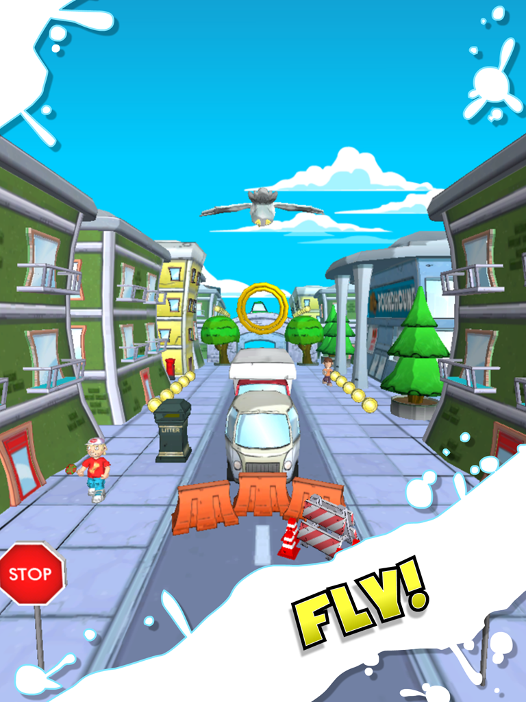 LOOK OUT! There’s a raging seagull on the loose! STEALING food from upstanding citizens and causing chaos! Take flight! You are a seagull! Feel the wind blow through your feathers as you conquer the skies! Poo like you mean it! Seagulls are all about chaos. Aim your shot and let rip! What’s yours is mine! Literally steal candy from babies! Or maybe tins of tuna are more your thing? Steal those too! Watch out! General Overkill is going missile crazy! Avoid the dangers so you can live to poo another day!